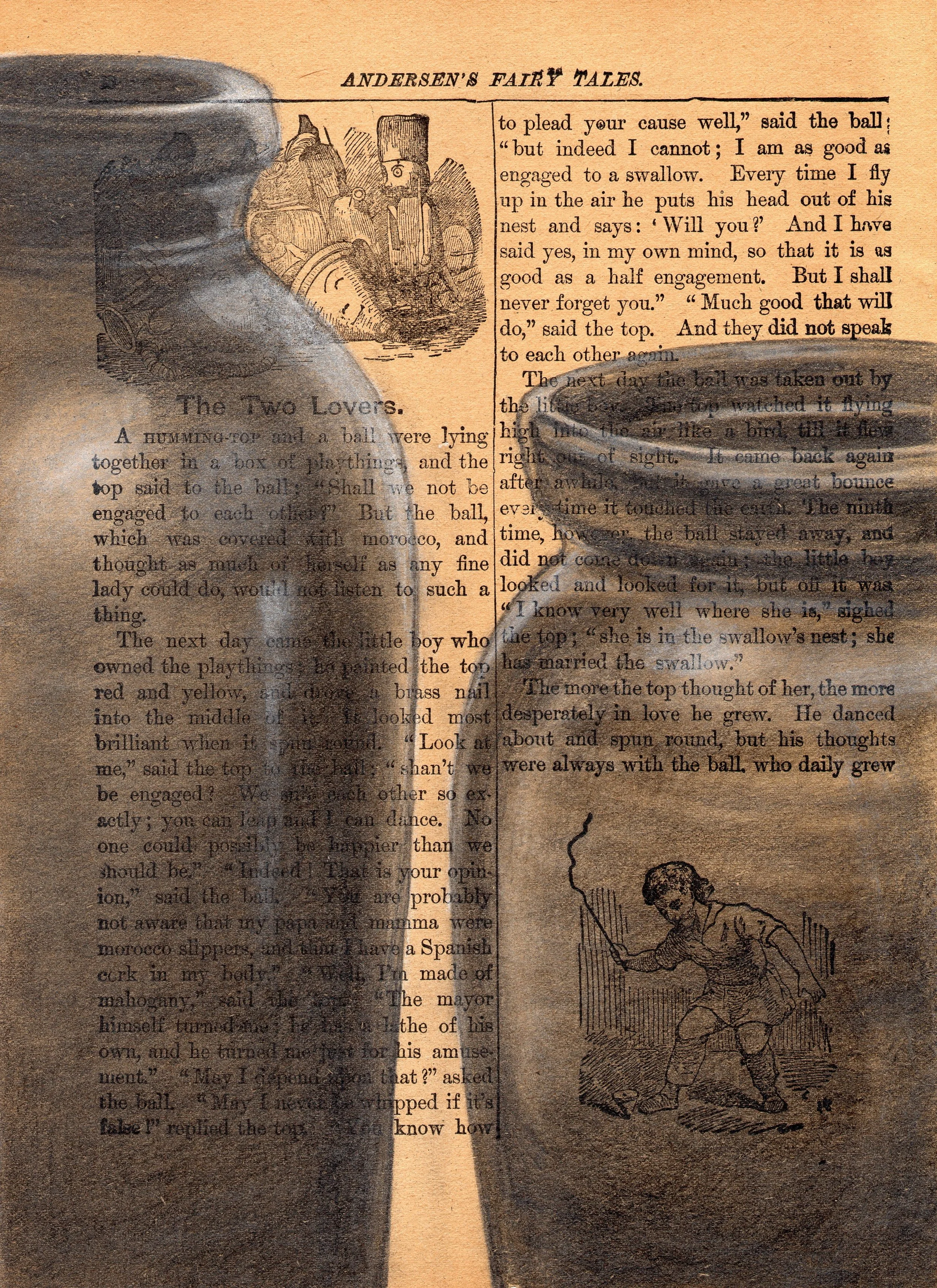 The Two Lovers, 2013. Coloured pencil on found paper, 10" x 7.25"