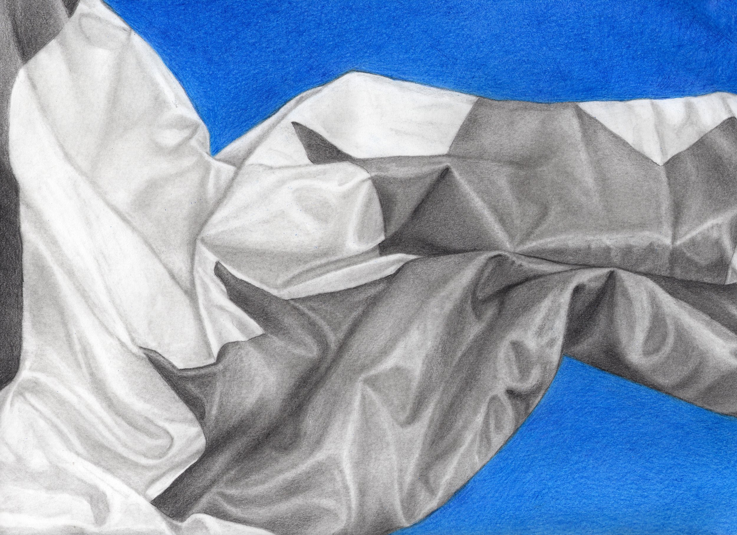 Flag with Blue, 2013. Mixed media on paper, 9" x 12"