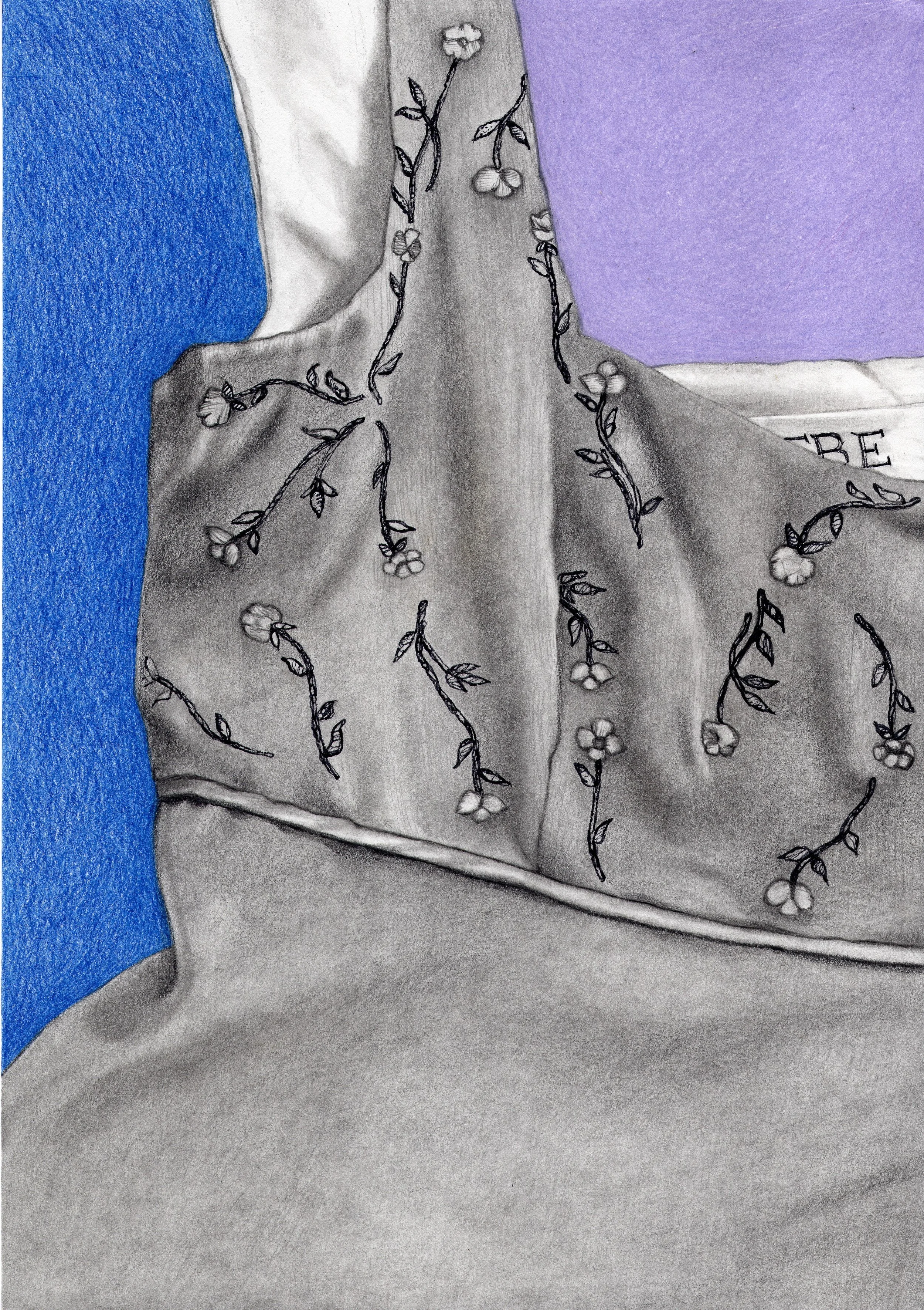 Silver Dress, 2013. Mixed media on paper - 12" x 8.25"